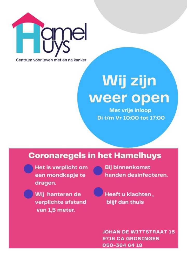 We zijn weer open!Nieuws / 27 januari 2022 We zijn heel blij om weer te kunnen doen waar we goed in zijn: een luisterend oor bieden aan mensen die leven met kanker. Je kunt weer binnenlopen zonder afspraak!