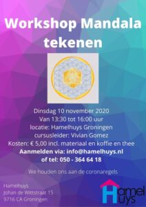 Dinsdagmiddag 10 november 2020 verzorgt Vivian Gomez-Brinkgreve een workshop Mandalatekenen in ons inloophuis.